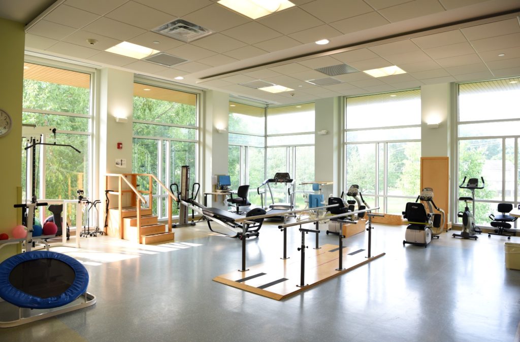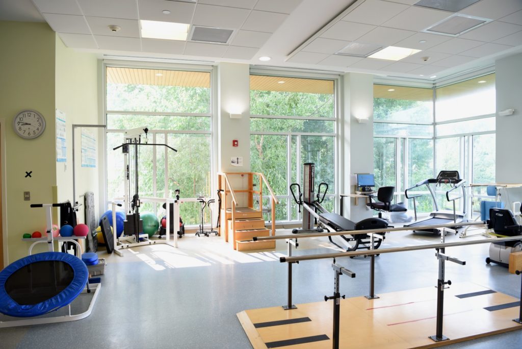 Our spacious and bright 3,000 square feet rehabilitation area is outfitted with treadmills, recumbent bikes and other equipment, indoor/outdoor multi-surfaces for mobility training, plus an OT kitchen and bathroom to help patients return home safely maximize functional independence.