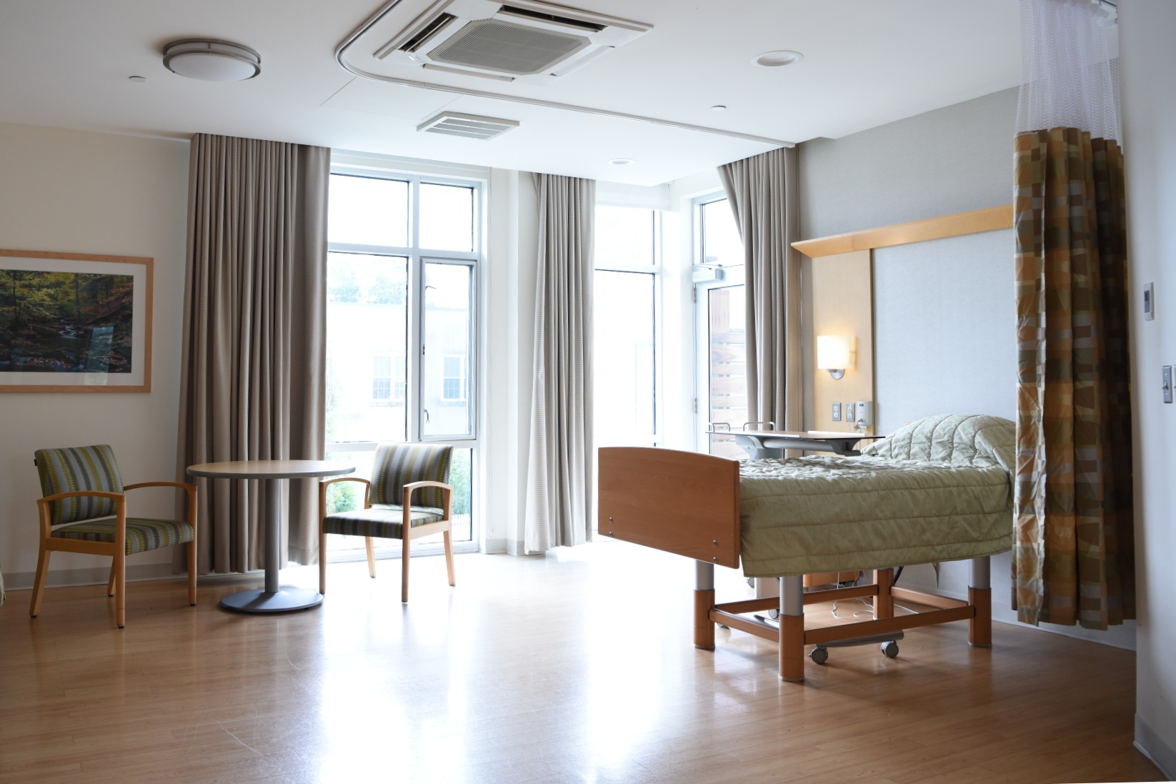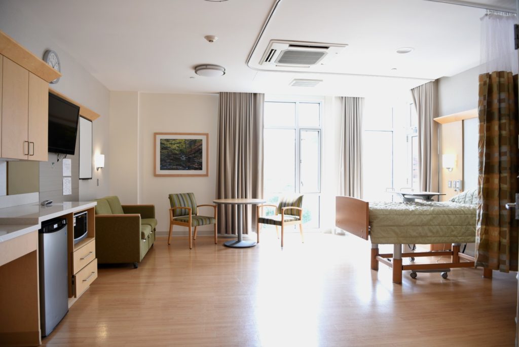 In addition to the amenities offered in our private and semi-private rooms, our suites feature a living area with sleeper sofa, refrigerator, large closets, a private outdoor patio area, and dedicated common areas, providing a comfortable and private environment for patients and their visiting families.