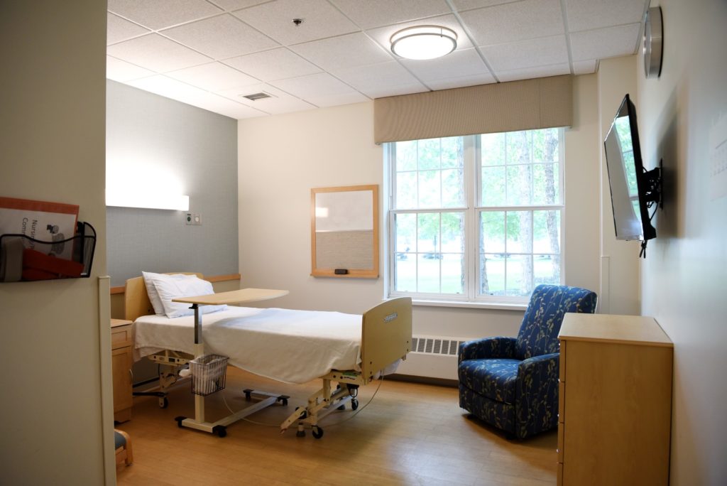 Accommodations include both private and semi-private rooms located on the Sweetland Unit at D'Youville Senior Care. Rehab patients stay in recently renovated rooms which all feature updated décor, bright lighting, windows, individual temperature control, flat screen TVs, cable and wireless internet access, and private bathrooms with walk-in showers.
